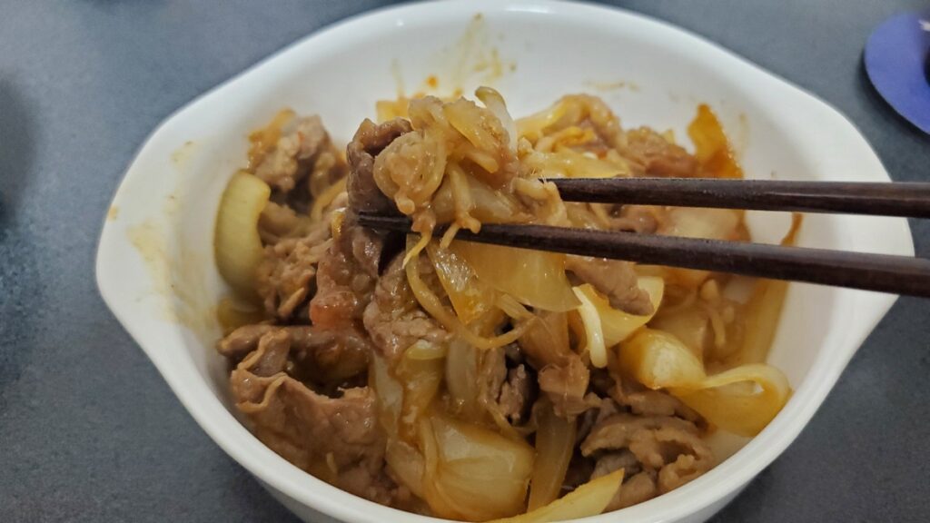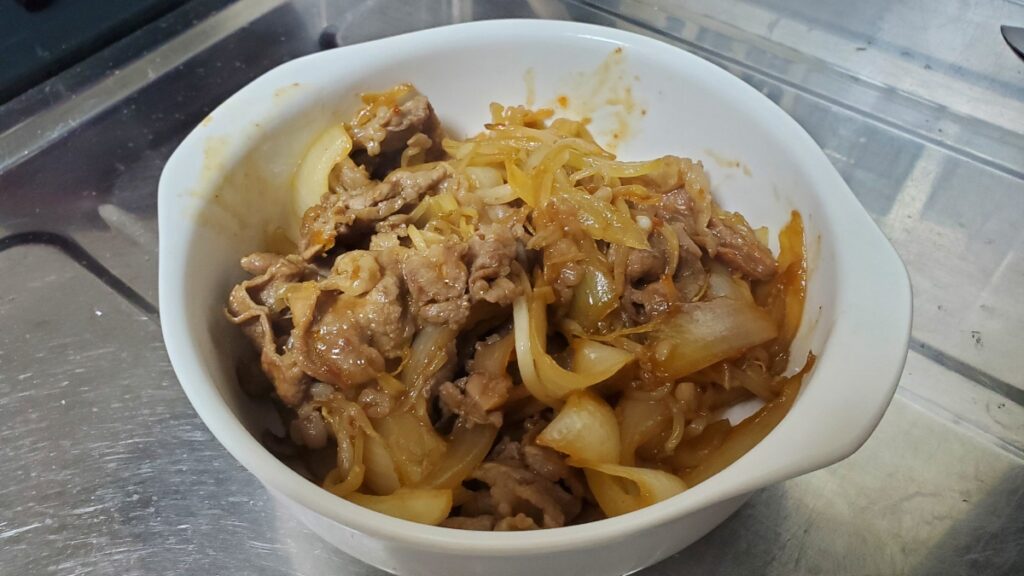 2.牛こまをお好みのサイズにカット、玉ねぎもお好みサイズにカット